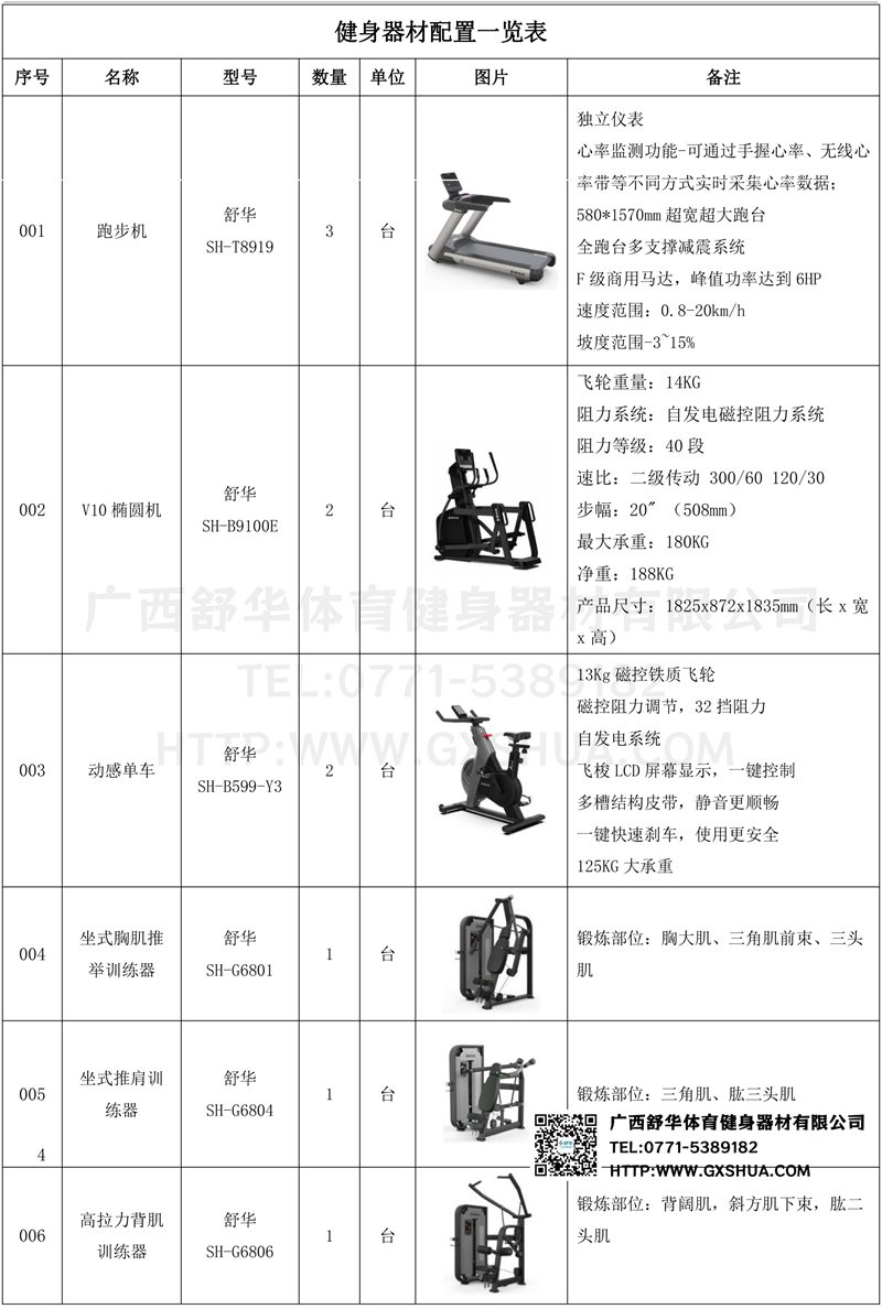 1.KS娱乐体育V9高端跑步机SH-T8919*3台-580*1570mm超宽超大跑台-跑感舒适,跑台整体安全稳定;全跑台多支撑减震平台,保证跑台超强支撑力,达到180kg支撑,满足专业健身房需求。F级商用马达-超强马达,AC 3.0HP 交流,峰值功率达到6HP,F级商用品质。速度范围达到0.8-20km/h;V9跑步机可实现跑台扬升功能,坡度范围-3~15%,满足客户不同的锻炼需求。