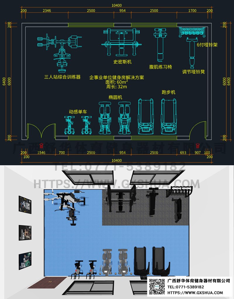 60m²企事业单位健身房