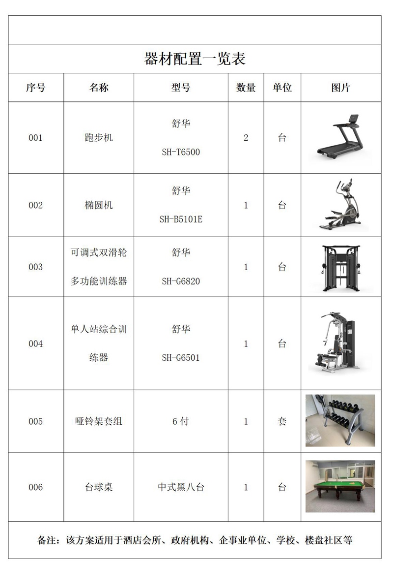 项目类型:小型企事业单位健身房